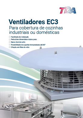 O ventilador EC3 é o novo ventilador de cobertura que, como o seu nome indica, tem por base o EC2. Gama dirigida para a ventilação mecânica, pequenas cozinhas e snack bares, ou outras situações de aplicação em telhado ou chaminé.